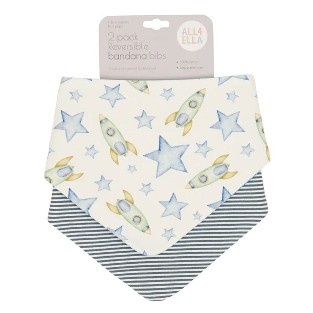 Bandana Bibs are the stylish way to keep your little one clean and dry during the day. With their triangular shape and tie at the back they are cute and functional, perfect for everyday wear during the long and drooling teething stage. Baby Village has carefully selected a range of Bandana Bibs that come in a variety of soft and durable fabrics such as cotton, as well as gorgeous patterns so that you can find a fashionable addition to your little ones wardrobe.
