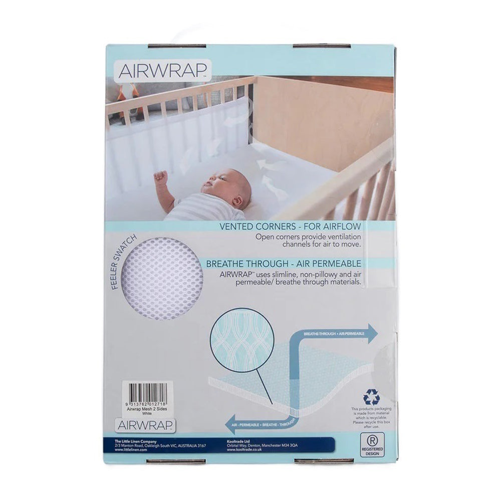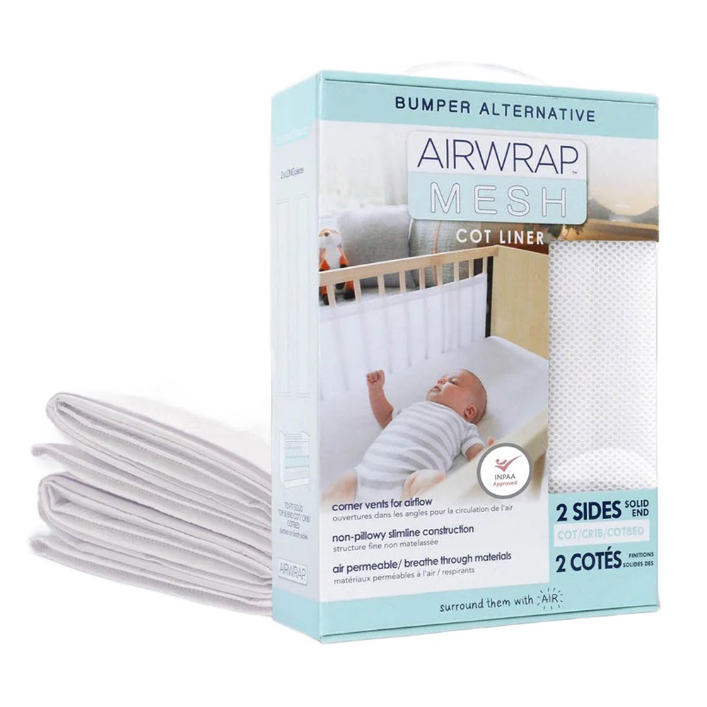 The Airwrap Mesh Cot Liner is a cot bumper alternative and is one of the most trusted and popular nursery bedding essentials in Australia since 2006. Moderately padded to help parents protect their baby from knocks and from tangling in the cot framework. Air-permeable with vented corners for air to move.