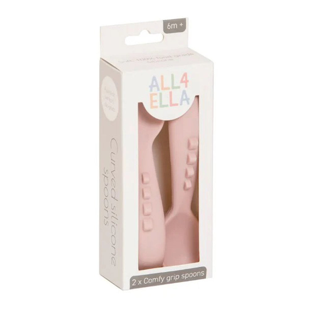All4Ella Comfy Grip Silicone Spoons 2pk in Dusty Pink are designed to make mealtimes hassle-free and to encourage self-feeding.
