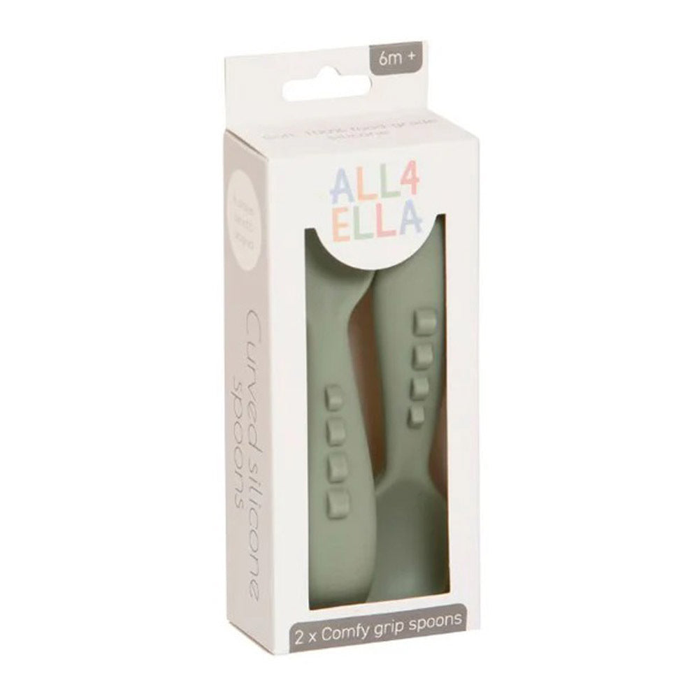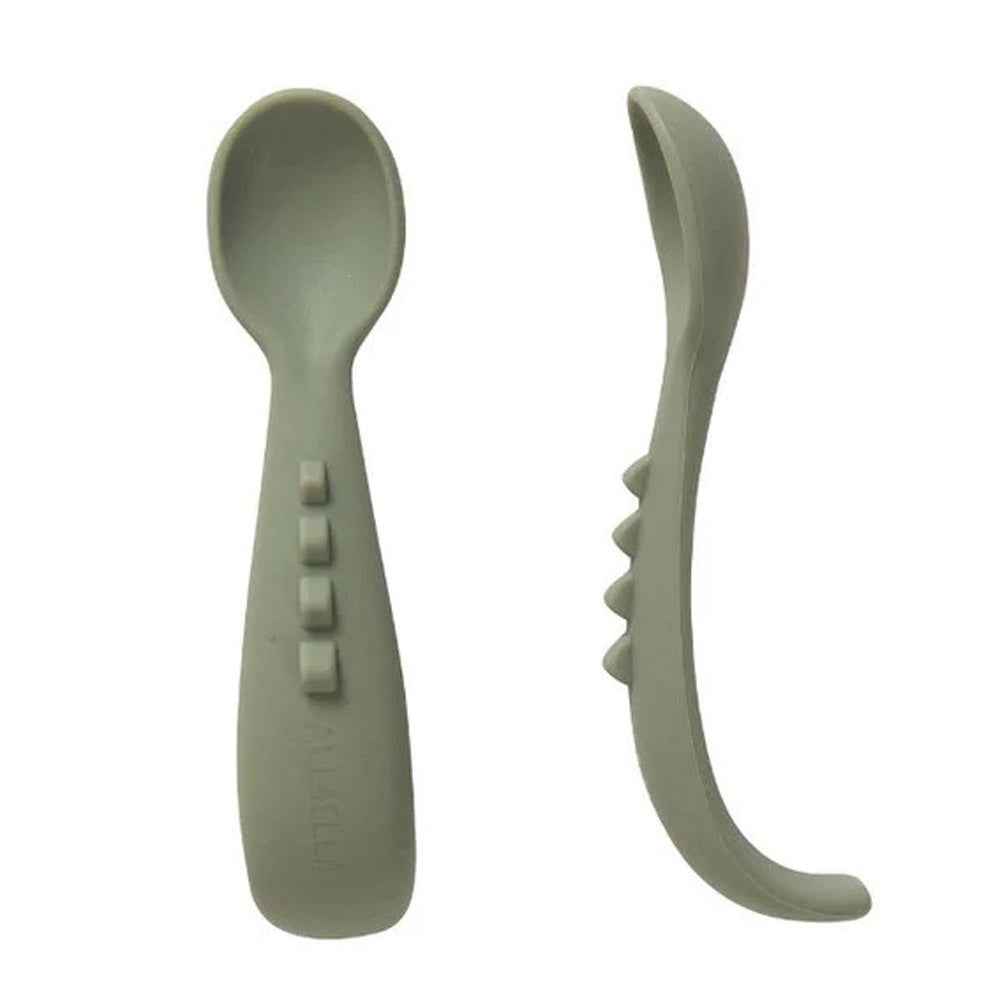 All4Ella Comfy Grip Silicone Spoons 2pk in Olive are designed to make mealtimes hassle-free and to encourage self-feeding.