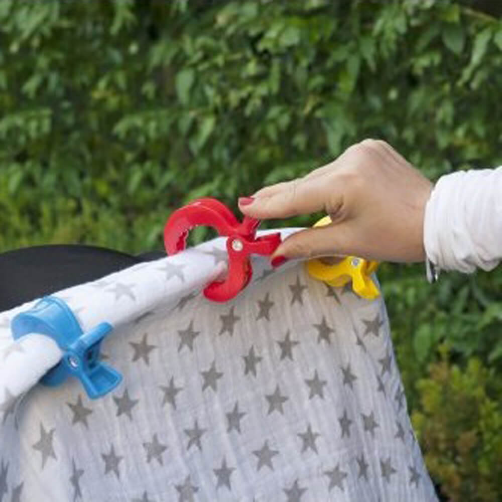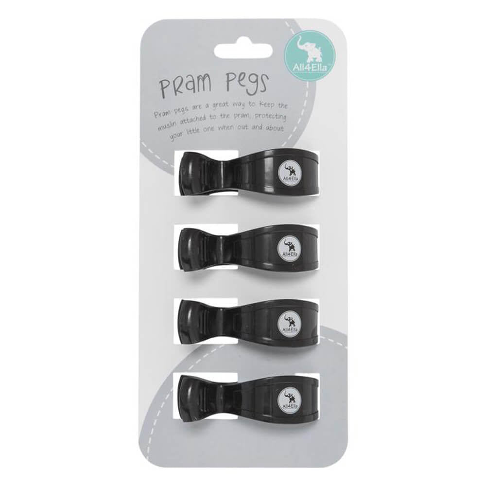 Pram pegs are a clever way to keep muslinĀ attached to the pram, stroller or buggy, protecting little ones when out and about.