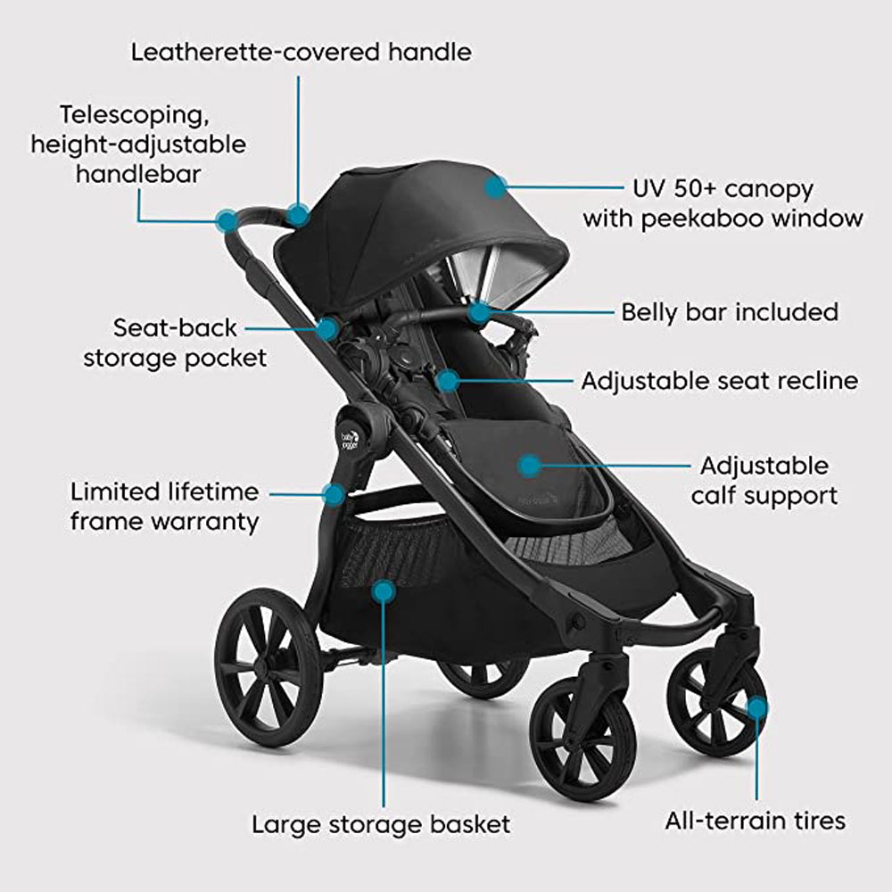 | Inclusions | Extended UV 50+ canopy with peekaboo window, Belly bar |