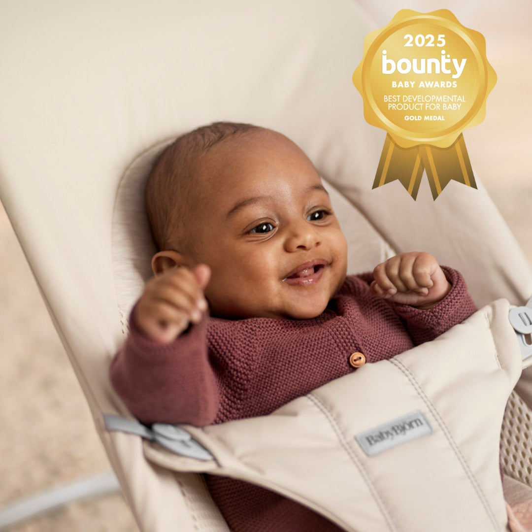 Discover the latest addition to Baby Bjorn bouncer family, Bouncer Bliss in a Woven, Petal quilt.