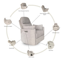 Crafted with a curveous silhouette, this state-of-the-art chair offers an effortlessly smooth electric recline and glide, enveloping you in soft pillows of comfort with adjustable lumbar and head/neck support, no matter your height or body shape. Upholstered in a luxurious, textured weave performance fabric that resists stains, it’s as practical as it is beautiful — making it a stylish staple in any nursery or living space.