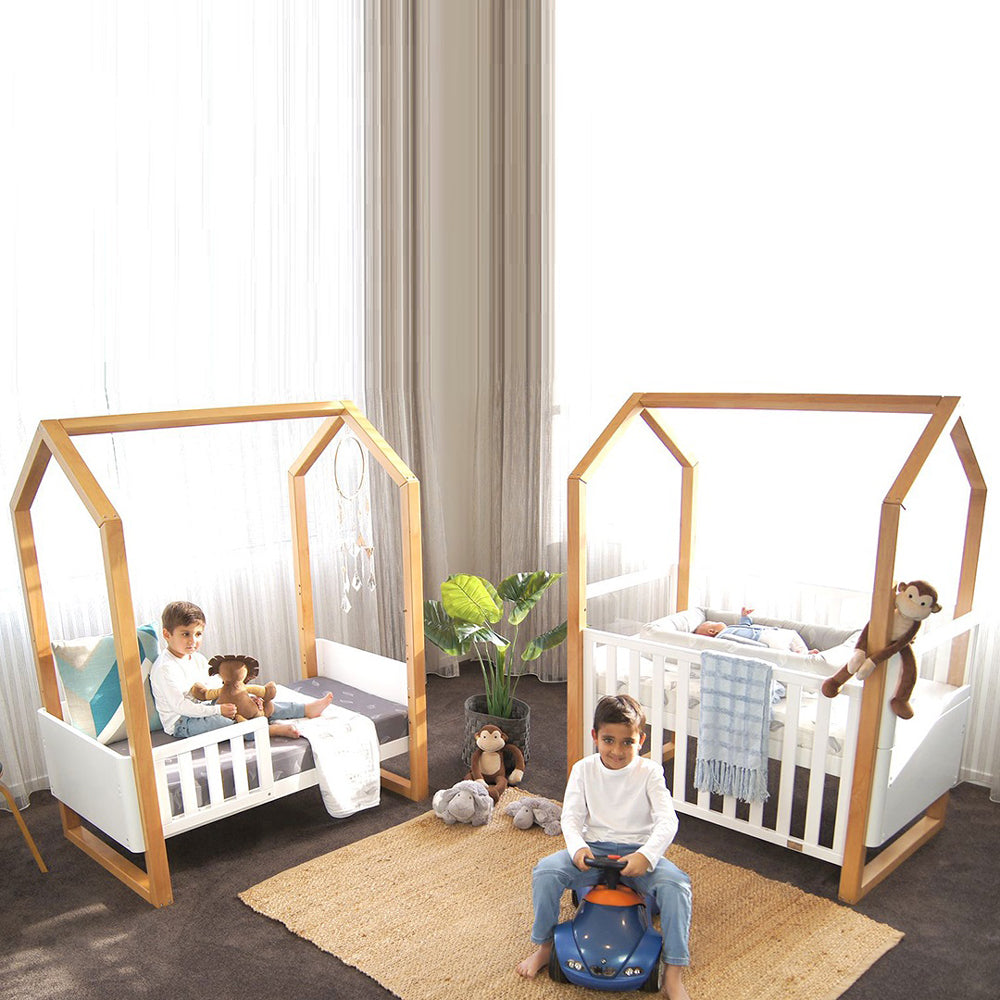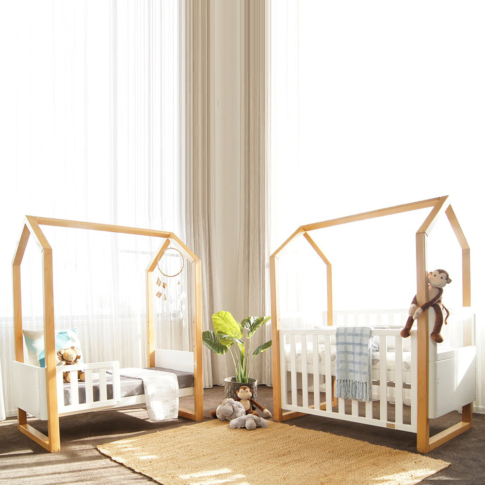 This cubby house designed cot grows with your baby from birth to toddler, so it will last for years to come, with all the conversion accessories included – so it is great value for you and your family with a toddler bed that actually looks like a bed.