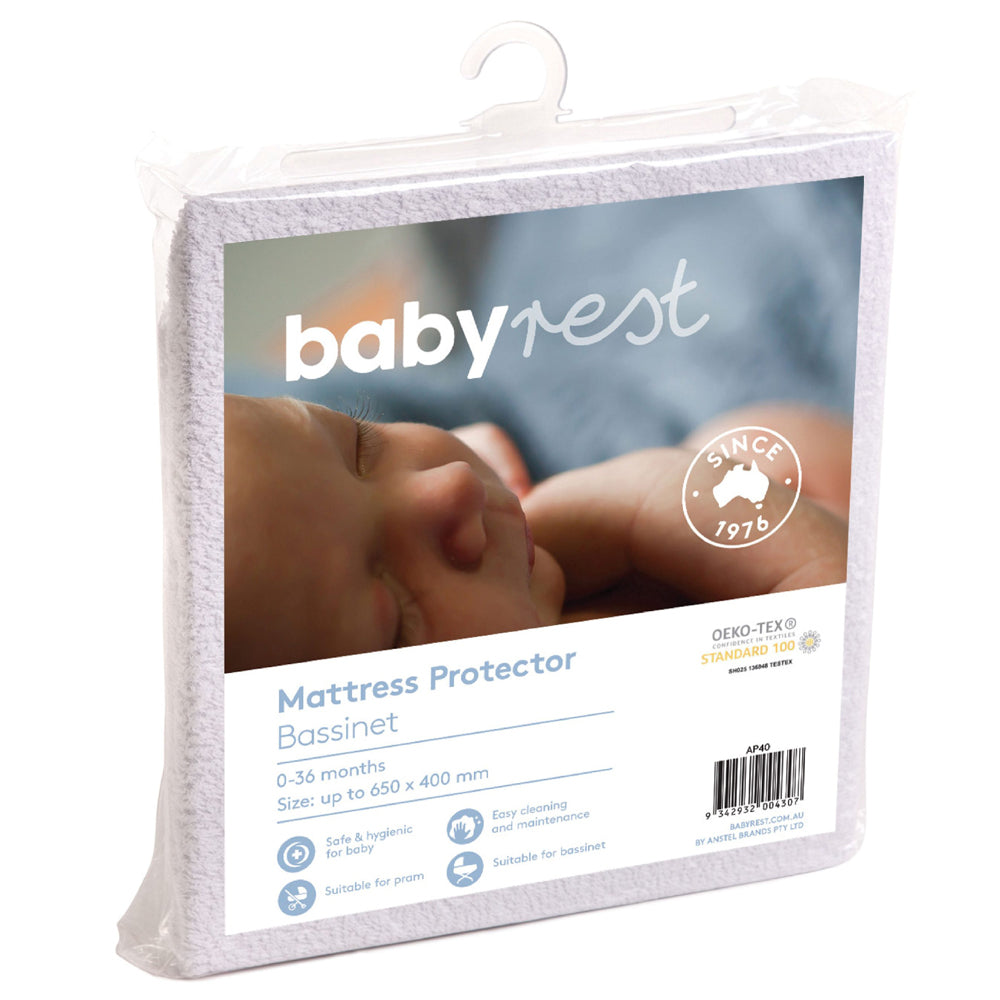 BabyRest recommends the use of a mattress protector with all cot, bassinet and cradle mattresses for convenience and hygiene. The BabyRest mattress protector features a waterproof and breathable membrane for optimum comfort, ventilation and absorbency. They recommend you always buy at least 2 for when one is in the wash, or for when travelling or sleeping away from home.