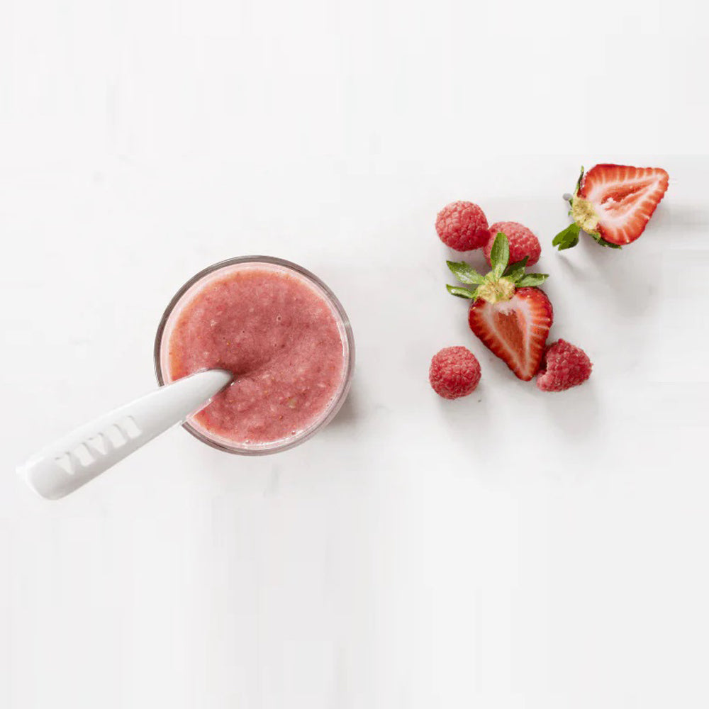 Ultra supple complete silicone envelope spoon for infants. For better hygiene, gentleness on gums, and to ease the transition from teat to spoon.