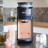 The MILKEO PLUS is compatible with most standard milk powders, although it is not recommended for special formulas such as thickened milk, goat's milk, rice protein, or those containing large amounts of vegetable oil or maltodextrin. You can check the list of compatible milk powders by clicking here. This bottle maker offers great flexibility with options for room temperature, body temperature, or warm milk, adapting to the specific needs of each baby. Thanks to its integrated mixing system, the MILKEO® PLUS ensures an even temperature and a lump-free texture for every bottle. In addition to preparing bottles, this versatile device can also heat water up to 70°C, making it possible to prepare tea or soups. Its backlit touchscreen makes operations simple and intuitive for a pleasant user experience.