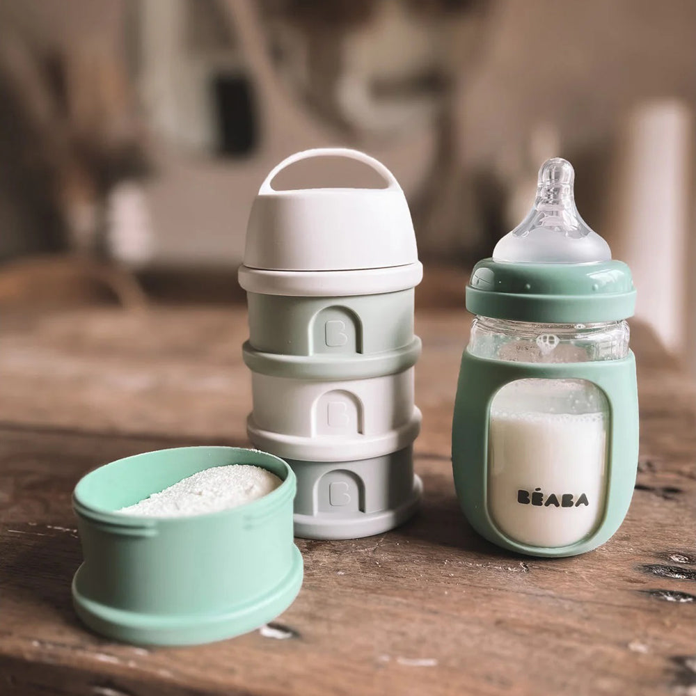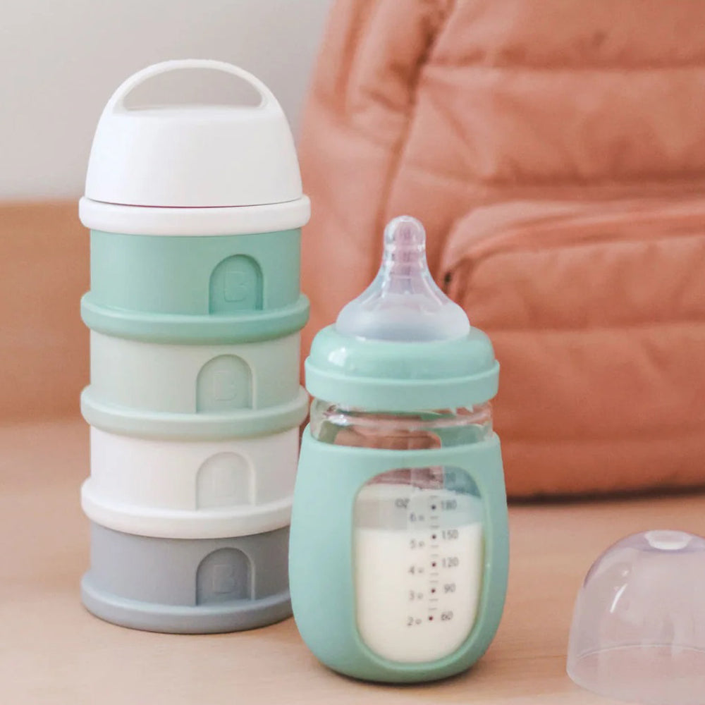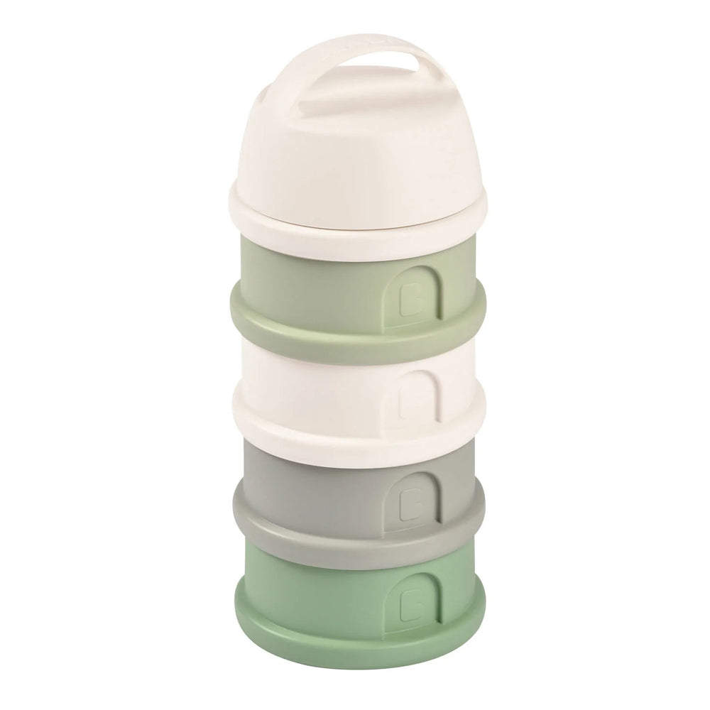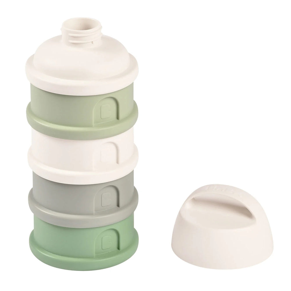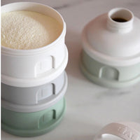The perfect container for individual servings of formula or snacks on the go. Designed with a covered spout and three separate sections which can be stacked in any order