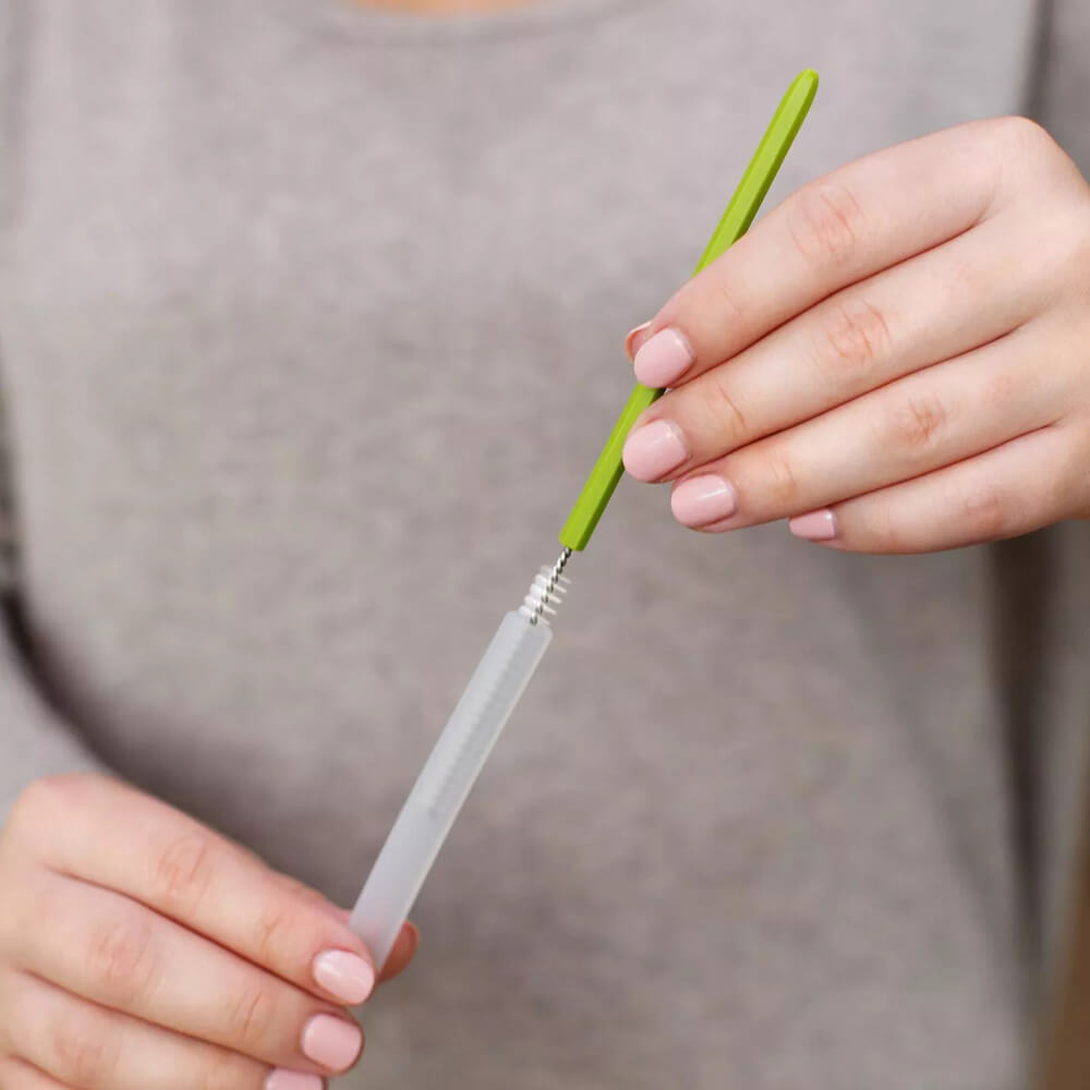 The only bristles on these brushes are made out of durable nylon which is great for getting the goop out of bottles, straws, sippy cups and breast pump parts.