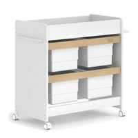Featuring four generously sized plastic buckets to store nappies, towels and other changing requirements, as well as a hanging rod, and a small shelf, this changer condenses a heap of storage into one compact and mobile unit.