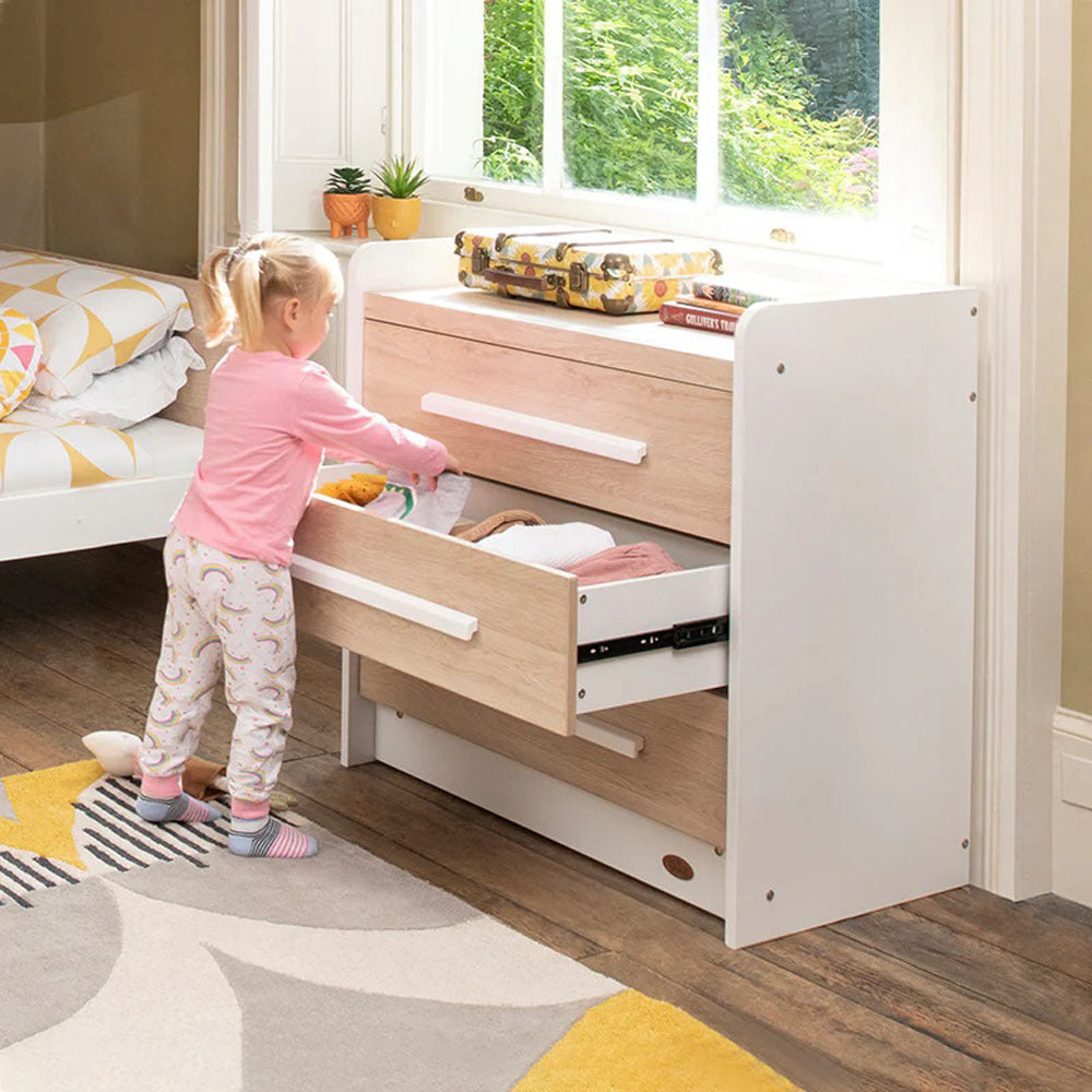 Three soft-close drawers offer plenty of space for clothes and the guarded chest-top is ideal for arranging additional storage baskets or showcasing décor.