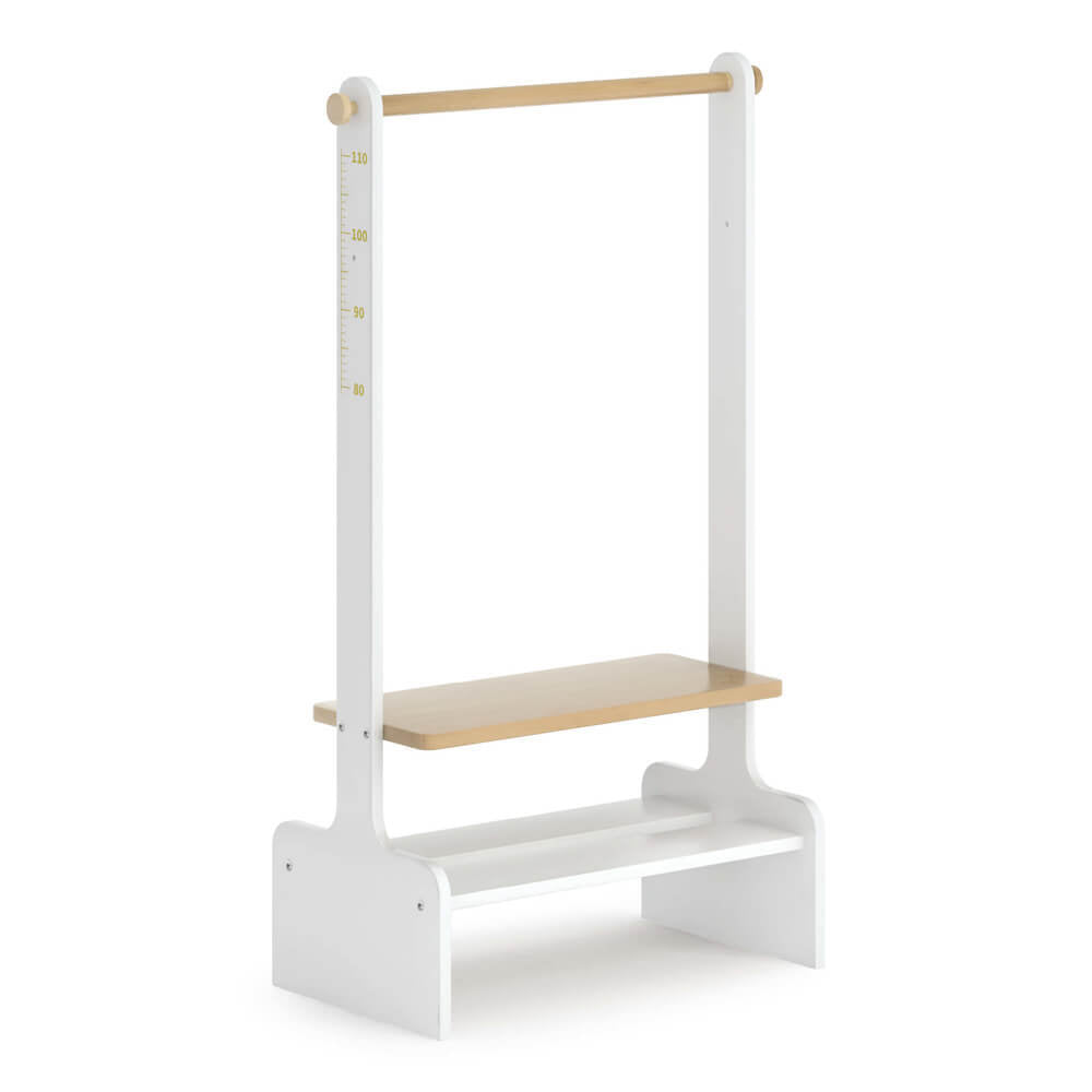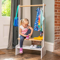 As well as a solid wood hanging rail, this children's clothing rack features two shelves giving you additional space to store folded clothes, shoes and storage boxes.