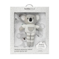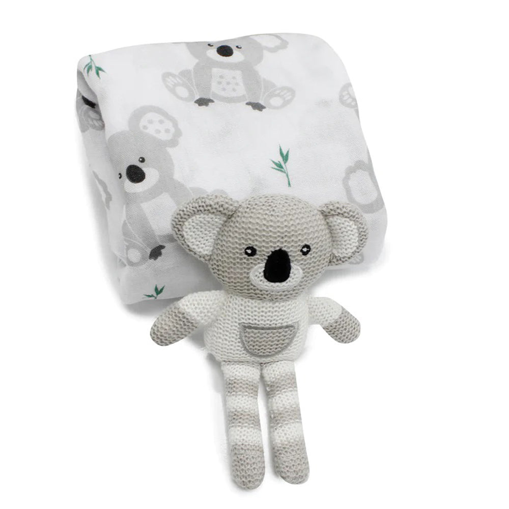 This gorgeous gift set from the Bubba Blue Aussie Animals collection includes a lightweight bamboo cotton muslin wrap and a charming knit Koala rattle toy, perfectly sized for little hands.