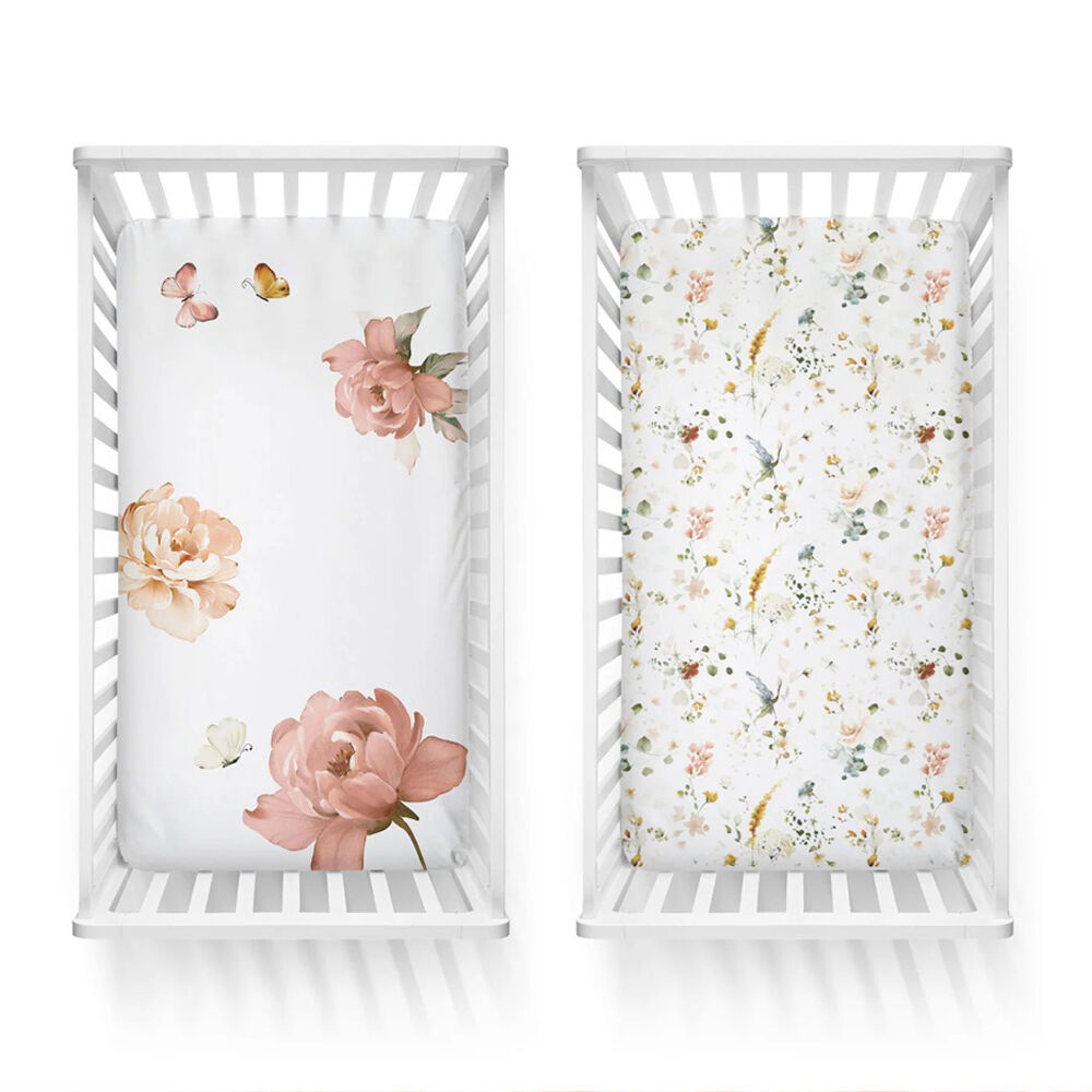 These gorgeous fitted sheets designed by Bubba Blue are made from soft jersey for comfort and feature elasticized edges for a snug fit.