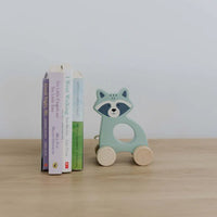 Introducing Bubble's delightful Bubble Raccoon Wooden Pull Along Toy - a charming green, pull-along toy embodying timeless simplicity. This timeless treasure is designed to capture the hearts of both children and parents alike.