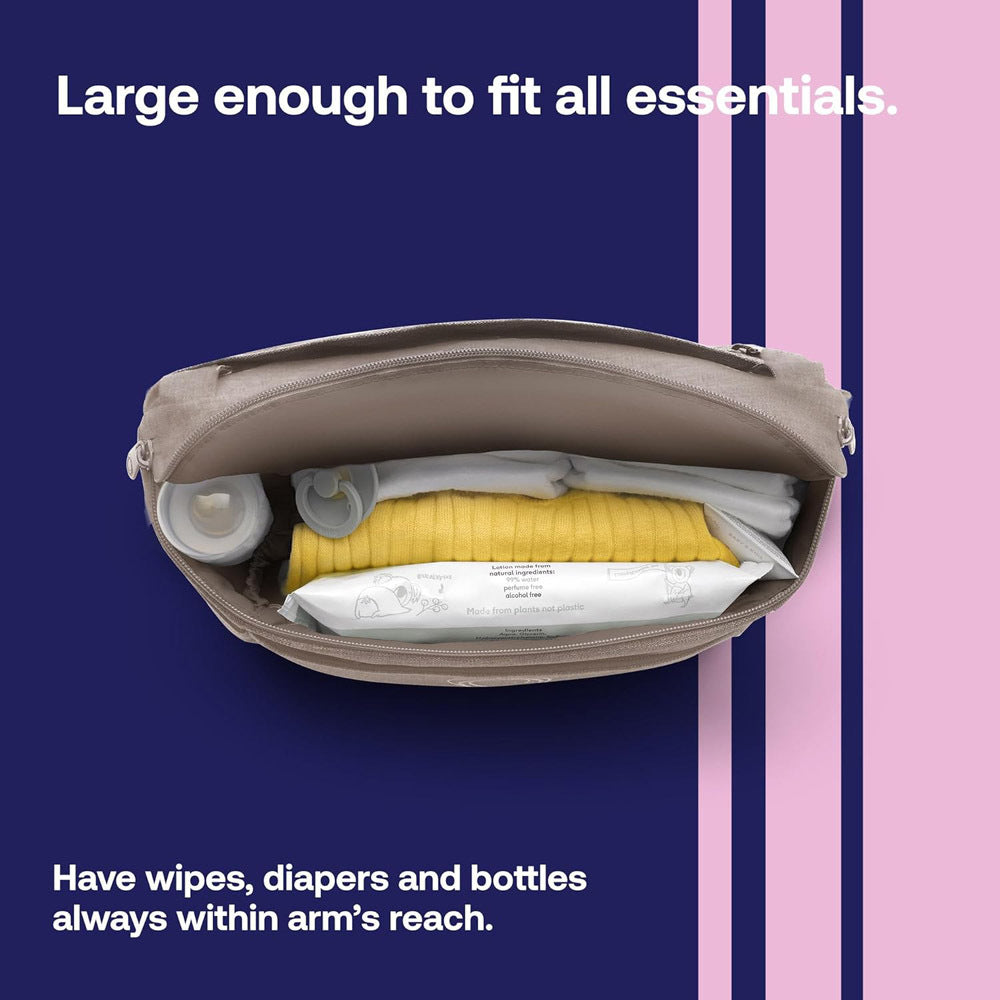 This water-repellent, multi-pocket stroller organiser is a must-have companion for any parent. It keeps your baby essentials always within arm's reach, and conveniently turns into a sleep tote bag when you need to use your items away from the pram.