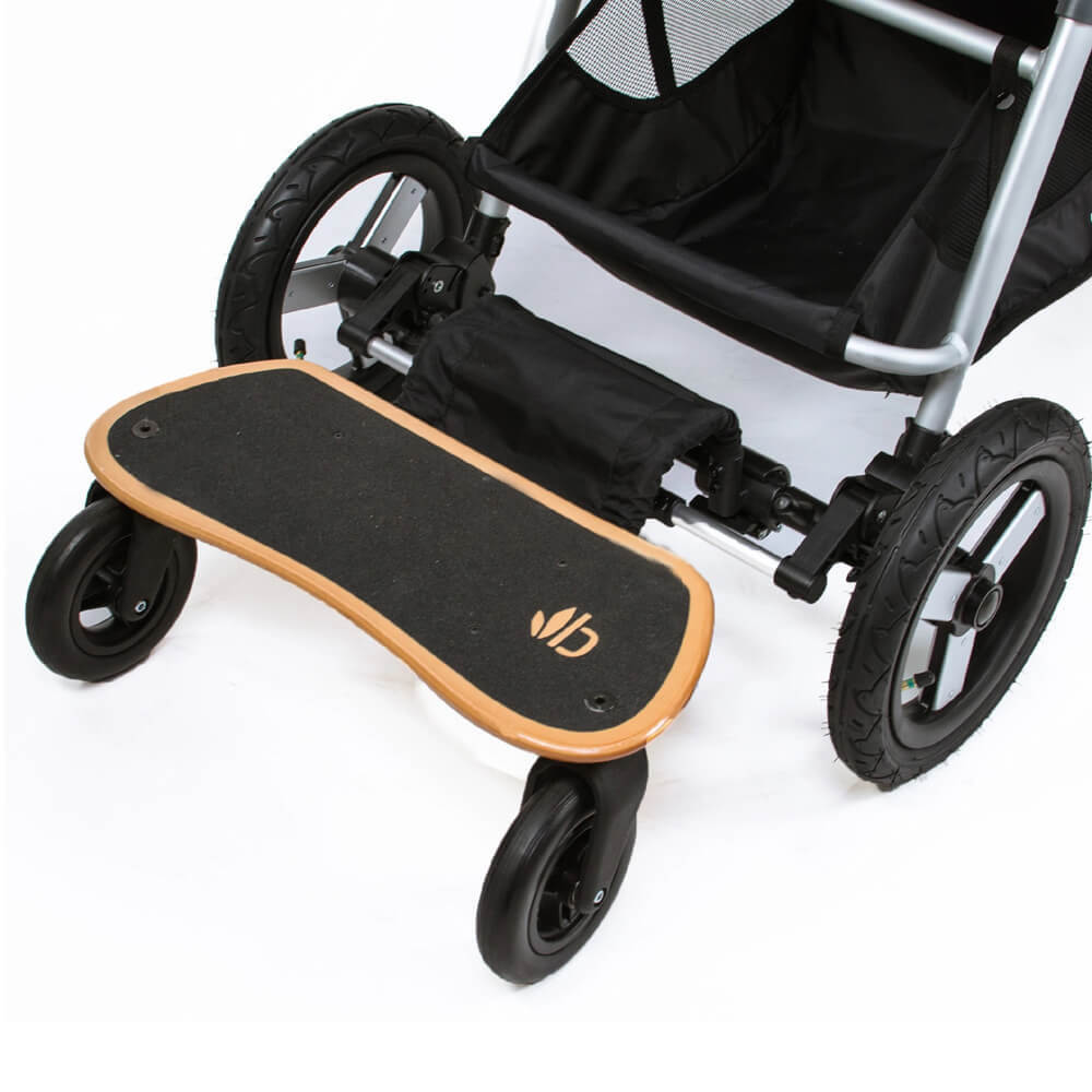 The new Bumbleride Mini Board, a skateboard-style stand that attaches to the back of the stroller, offers a fun and dynamic transitional tool for growing toddlers, while also extending the lifespan and relevance of the Bumbleride stroller.