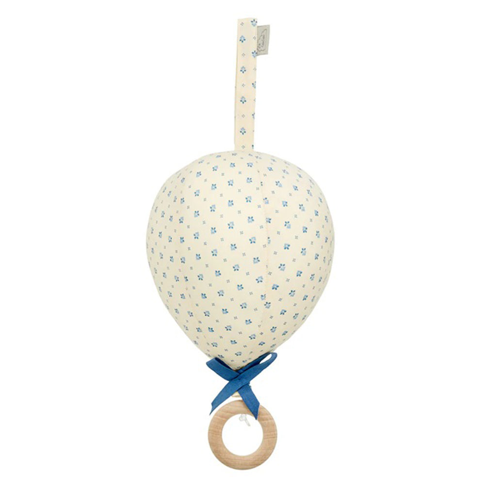 Pull the wooden ring, and the music starts. Made in beautiful quilted fabric.
