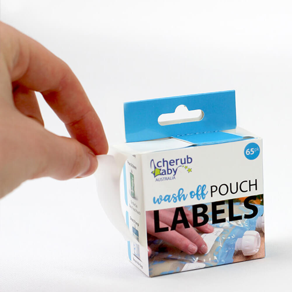 Label your Cherub Baby reusable baby food pouches and breast milk bags with these handy dissolvable non toxic labels. They wash off when you wash and re-use your pouch!