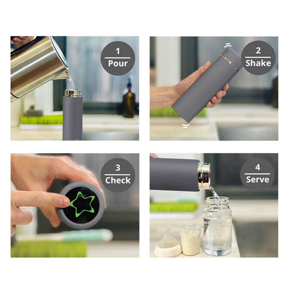 Just pour in boiling water, secure the lid, and shake until the LED indicator glows green β it's that simple!