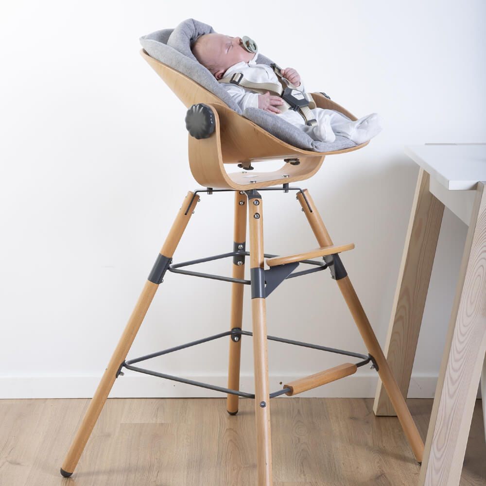 The Newborn Set is compatible with the Evolu 2 and the Evolu ONE.80°, so you can use the high chair from birth up to 6 years. This beautiful designed baby high chair seat is ergonomic, safe and super functional. The seat itself can be set to any position by turning the buttons.