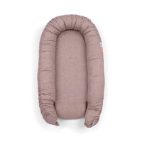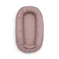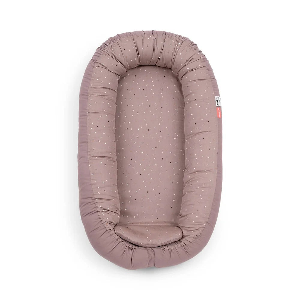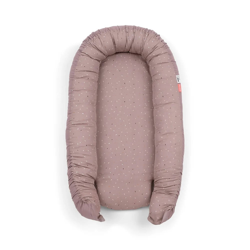 The light powder cozy nest is sprinkled with festive confetti on the inside and has a solid powder colour on the outside. The baby nest is made of soft cotton with polyester filling and has a soft one-piece foam mattress.