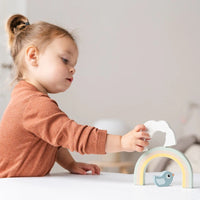 The Birdee stacking tunnel has 3 multifunctional bricks for imaginative play and puzzle-solving. This versatile set allows your child to stack, balance, and engage in creative play, doubling as a decorative piece with its cute, bright colours for the nursery.