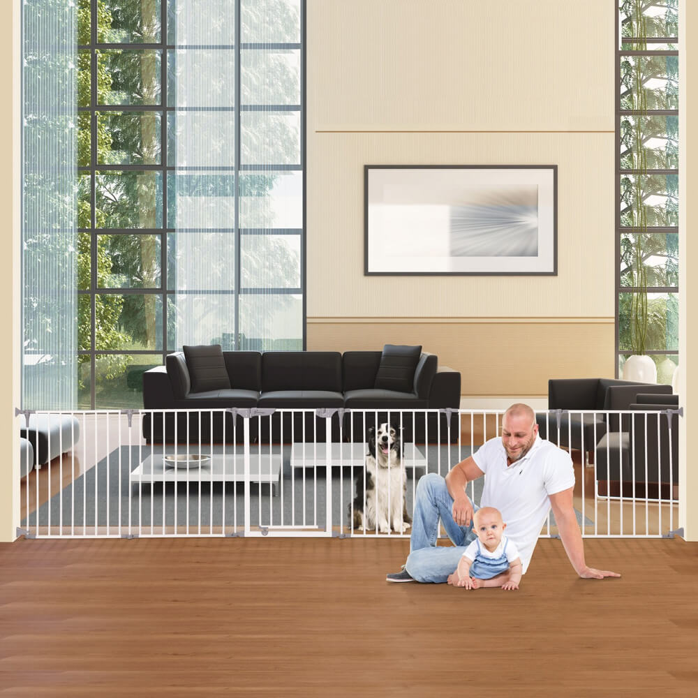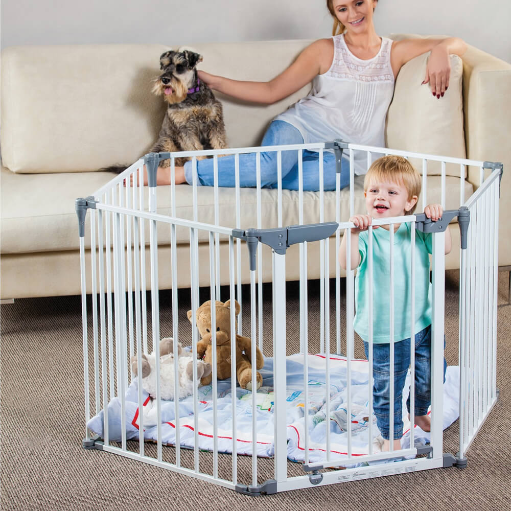 The Dreambaby Royal Converta 3 in 1 Play-Yard & Wide Barrier Gate is a versatile six panel play pen designed to be used in a number of different combinations including play area, fireplace guard, room divider or multi-panel gate.