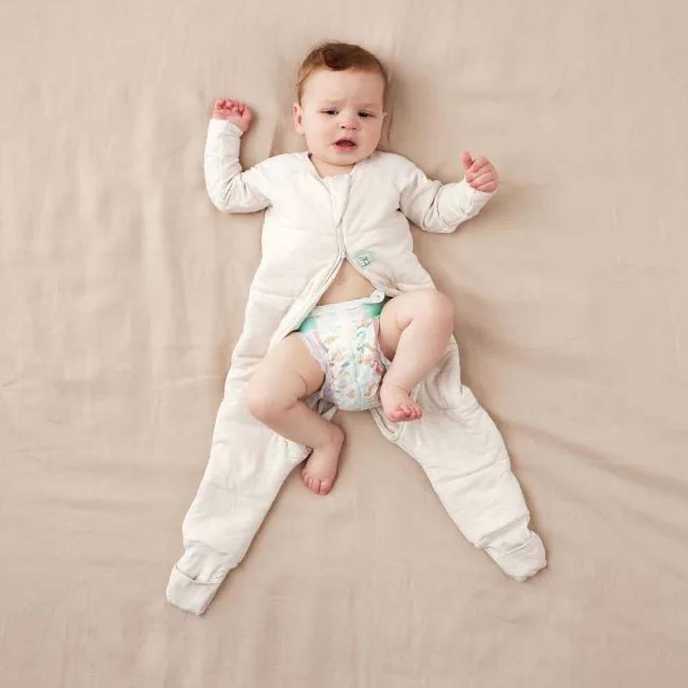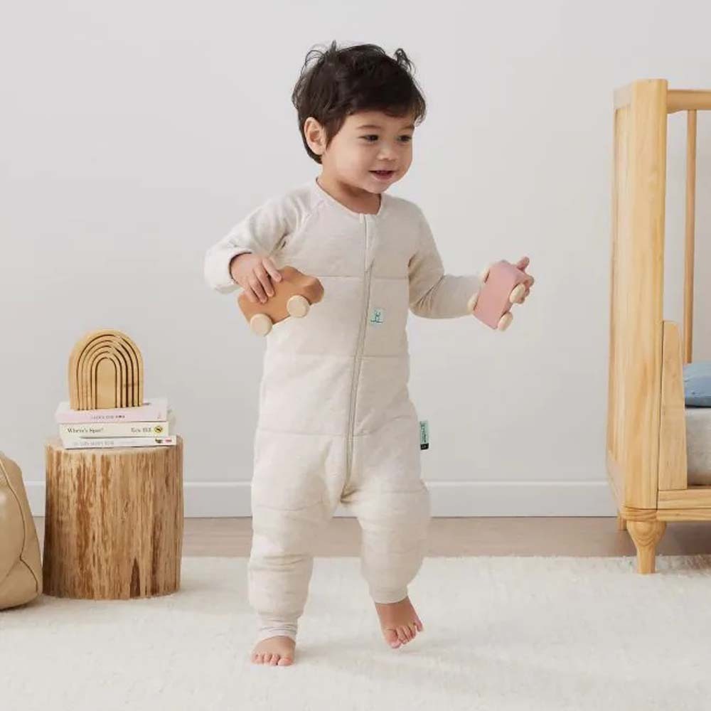 The 2.5 TOG Sleep Onesie will keep kids warm during sleep in room temperatures of 17-23°C / 63-73°F. The TOG rating means there is no need for additional blankets in the cot when using this product, making it a safe-sleep option. For older toddler and preschoolers who are 'blanket-training' in a big bed, the TOG rating will help keep them warm if they kick the blankets off during sleep. If using a 2.5 TOG or 3.5 TOG for blanket training, we suggest a light blanket on top to prevent overheating. Parents can follow the FREE room thermometer and What to Wear guide provided with the product, to layer appropriately underneath to keep their child warm. Pair this with one of the TOG-rated Layers, Bodywear or Pyjamas underneath (sold separately), and you can also wear a pair of socks for extra foot warmth on chilly nights.