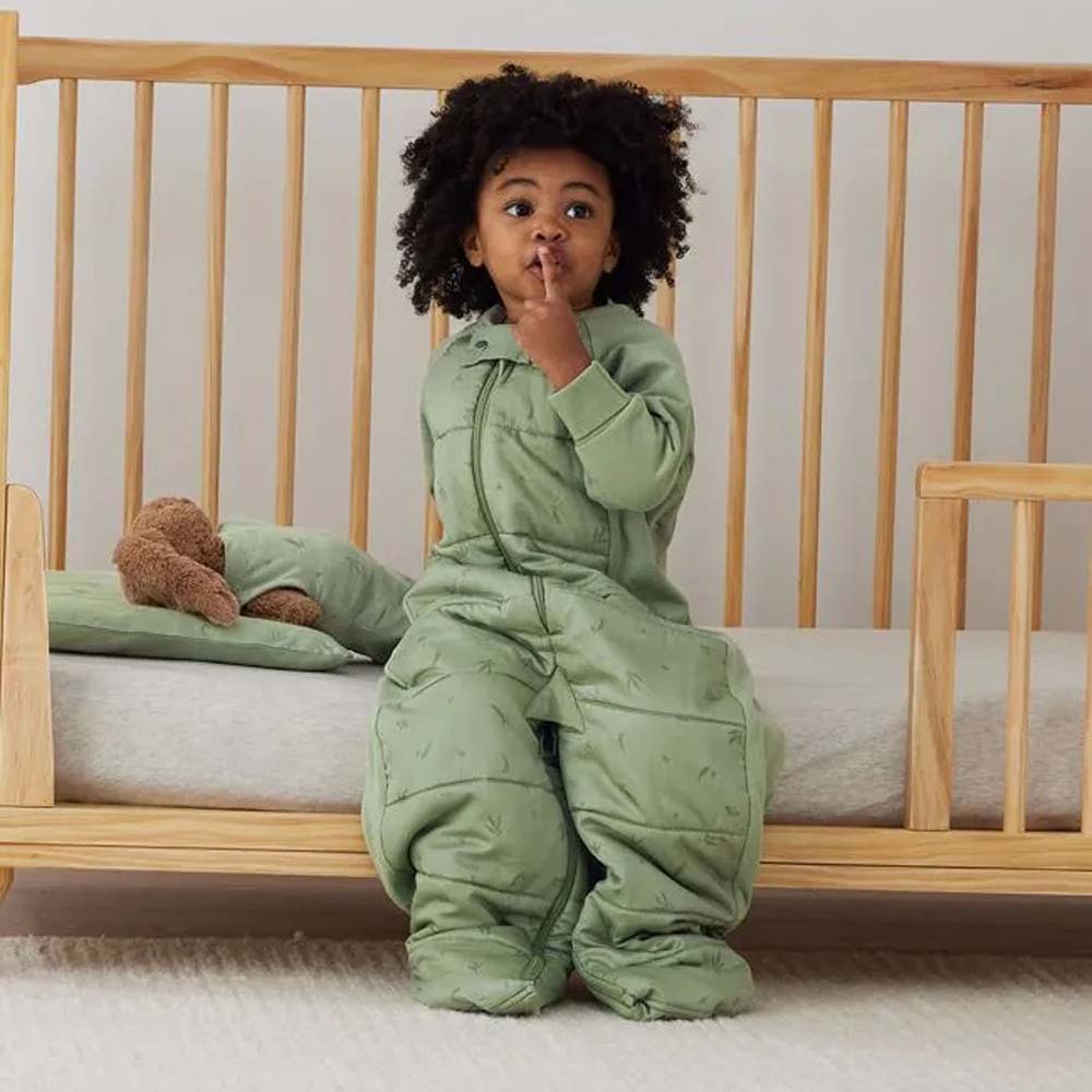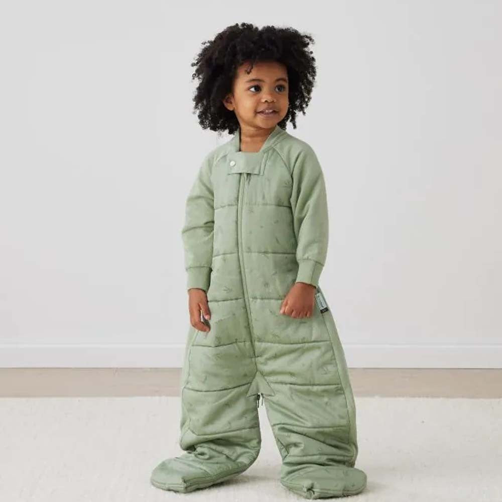 In Sleep Suit mode (with legs), this is the perfect sleep solution for little wrigglers and movers who like more leg freedom in sleep, and toddlers/pre-schoolers transitioning from cot to bed. Whilst in suit mode, the product can also be used with a 5-point harness such as in a pram for day sleeps on walks*. In Sleep Suit mode, as sleeping bag with legs, the product provides comfort by not restricting the legs during sleep, and reduces the risk of cot climbing injury. Grip pads on the feet keep your little one stable if walking overnight to the bathroom (or into your room!). The four-way zippers provide ease of use for overnight toilet training. In either Bag or Suit mode, the product is hip-friendly for growing hip joints.
