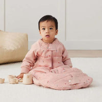 The 3.5 TOG Sheeting Sleeping Bag is perfect for keeping a child warm overnight in rooms 14-21°C / 57-70°F. The sleeves on the Sheeting Bag are rated 1.0 TOG and provide extra warmth on cooler nights. The TOG rating means that there is no need for additional blankets in the cot when using this product, making it a safe-sleep option. Parents can be rest assured that the breathable organic, natural fibres will help regulate their child’s temperature and prevent overheating. Parents can follow the FREE room thermometer and What to Wear guide provided with the product, to layer appropriately underneath to keep their child warm. Pair this pouch with one of the TOG-rated Layers, Bodywear or Pyjamas underneath (sold separately).