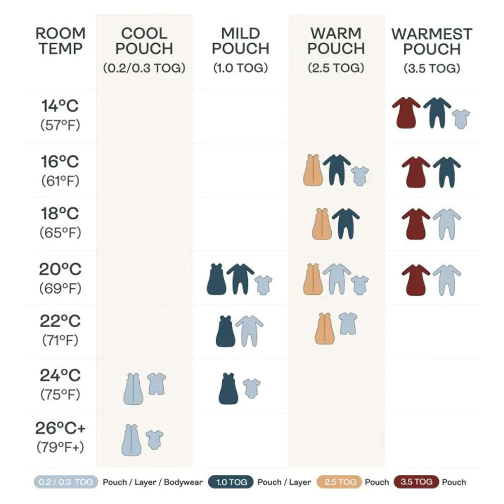 Mix and match ergoPouch TOG-rated Layers, designed to be worn under the range of Cocoon Swaddle Bags, Sleeping Bags, Sleep Suit Bags and Sleep Onesies.