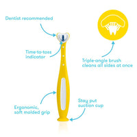 Put the brushing battle to bed! The Toothhugger's unique triple-angle brush head attacks plaque fast by cleaning all sides at once. Specially designed with little brushers in mind, its easy-to-hold handle suctions to surfaces, while soft bristles are gentle on sensitive gums and even change colours to let you know when it's time to replace.