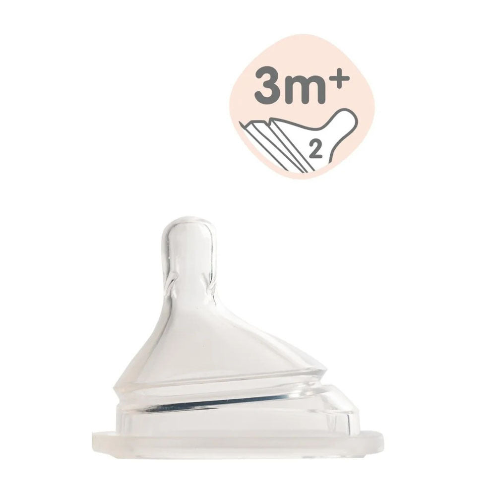 It comes with a Medium Flow teat that is suitable from the third month as the teat hole becomes bigger and gradually increases milk flow rate.