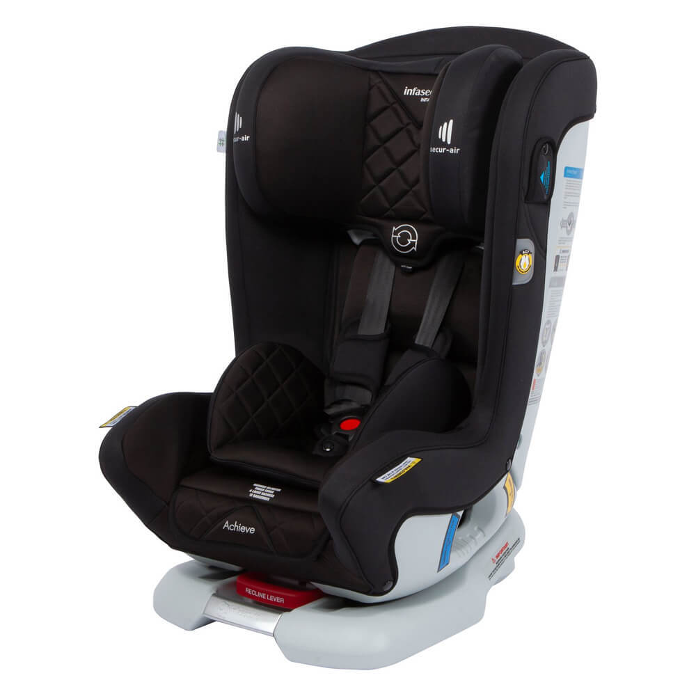 Secur-air works hand in hand with Air Cocoon Technology (A.C.T) to dramatically reduce crash energy to the child's head. Achieve comes with A.C.T as a standard feature, which alone reduces crash energy to the child more than five times lower than the level required by the 2013 Australian Standard. With the addition of Secur-air, your restraint gains a third layer of protection for your child's head.