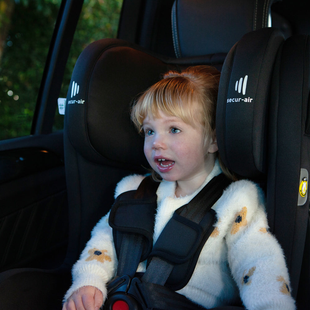 Secur-air works hand in hand with Air Cocoon Technology (A.C.T) to dramatically reduce crash energy to the child's head. Attain comes with A.C.T as a standard feature, which alone reduces crash energy to the child more than five times lower than the level required by the 2013 Australian Standard. With the addition of Secur-air, your restraint gains a third layer of protection for your child's head.