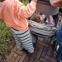 Attach the clip around the chassis and off you go. Add the footboard on to your Hub2 stroller in one click and your toddler is ready to (st)roll, whether standing or sitting.