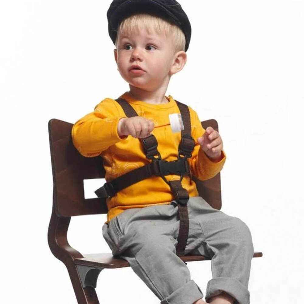 This 5 points safety harness insures your child into the Leander high chair and is very practical if your child likes to move around lots.