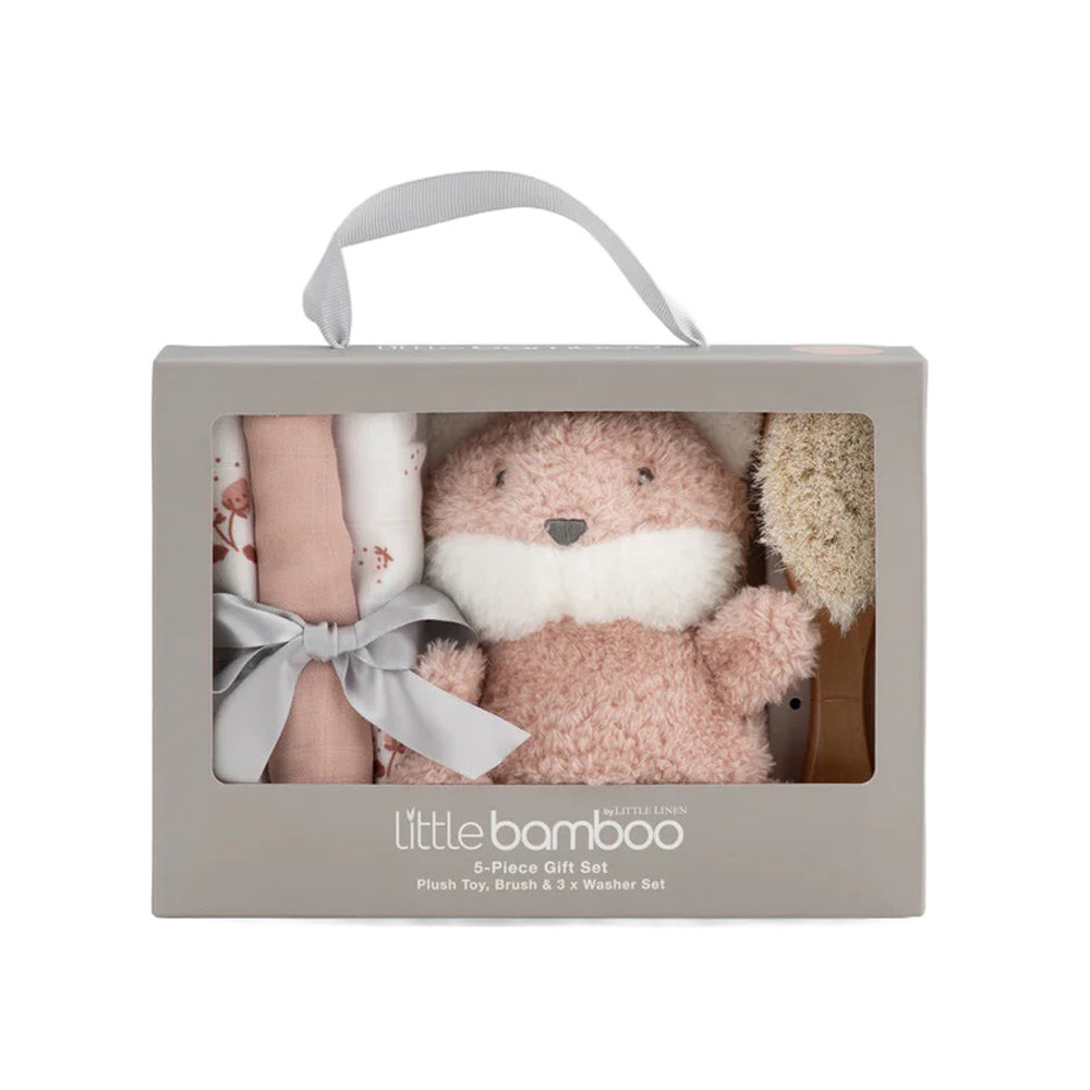 Bath time and clean-up have never been so delightful with the 5-Piece Gift Set by Little Bamboo. This set of essentials includes an irresistibly soft fox plush toy that your little one is sure to adore.