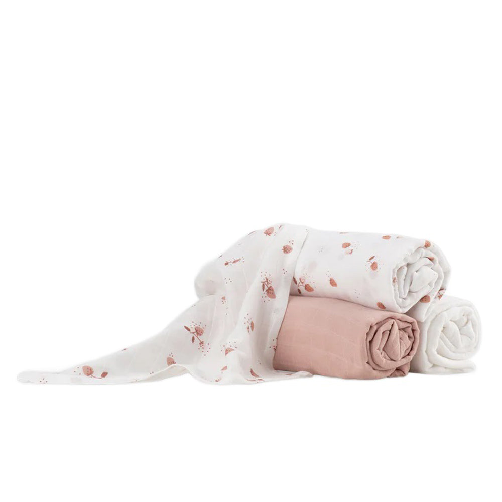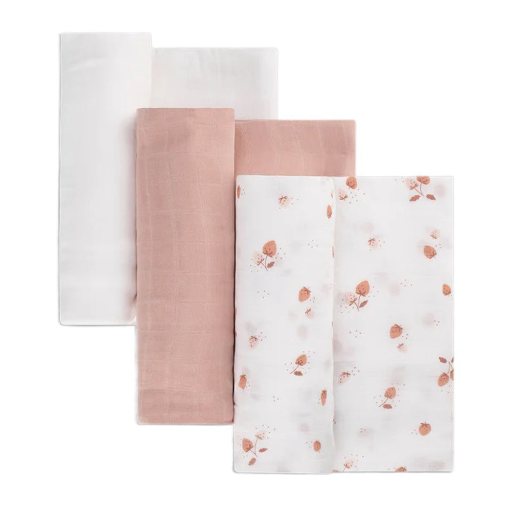 The Dusty Rose-colored 3-pack muslins from Little Bamboo combine subtle and sophisticated styling with your favorite luxurious blend of Viscose from Bamboo and Cotton.