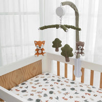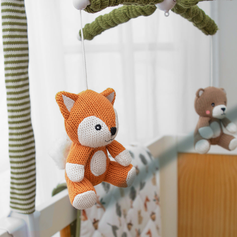 Little ones are going to love watching these sweet forest characters rotate overhead to Brahms lullaby as they drift off to sleep. This gorgeous musical cot mobile features 100% cotton knit characters with exquisite detailing and is the perfect finishing touch to your nursery.