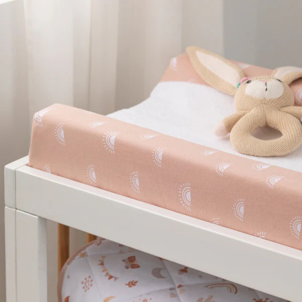Cushion your baby during change time with the 100% cotton change pad cover with absorbent terry towelling middle. Featuring elasticated sides to provide a secure fit, it allows you to change your baby confidently. Match back with other coordinating nursery accessories to create the nursery of your dreams!