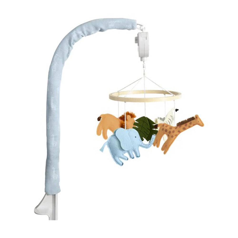 Little ones are going to love watching this safari scene gently rotate overhead to Brahms lullaby as they drift off to sleep. This gorgeous musical cot mobile features exquisite detailing and is the perfect finishing touch to your nursery.
