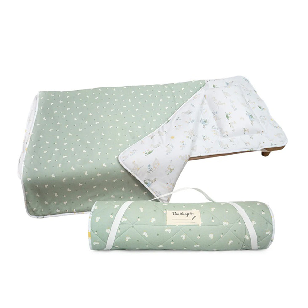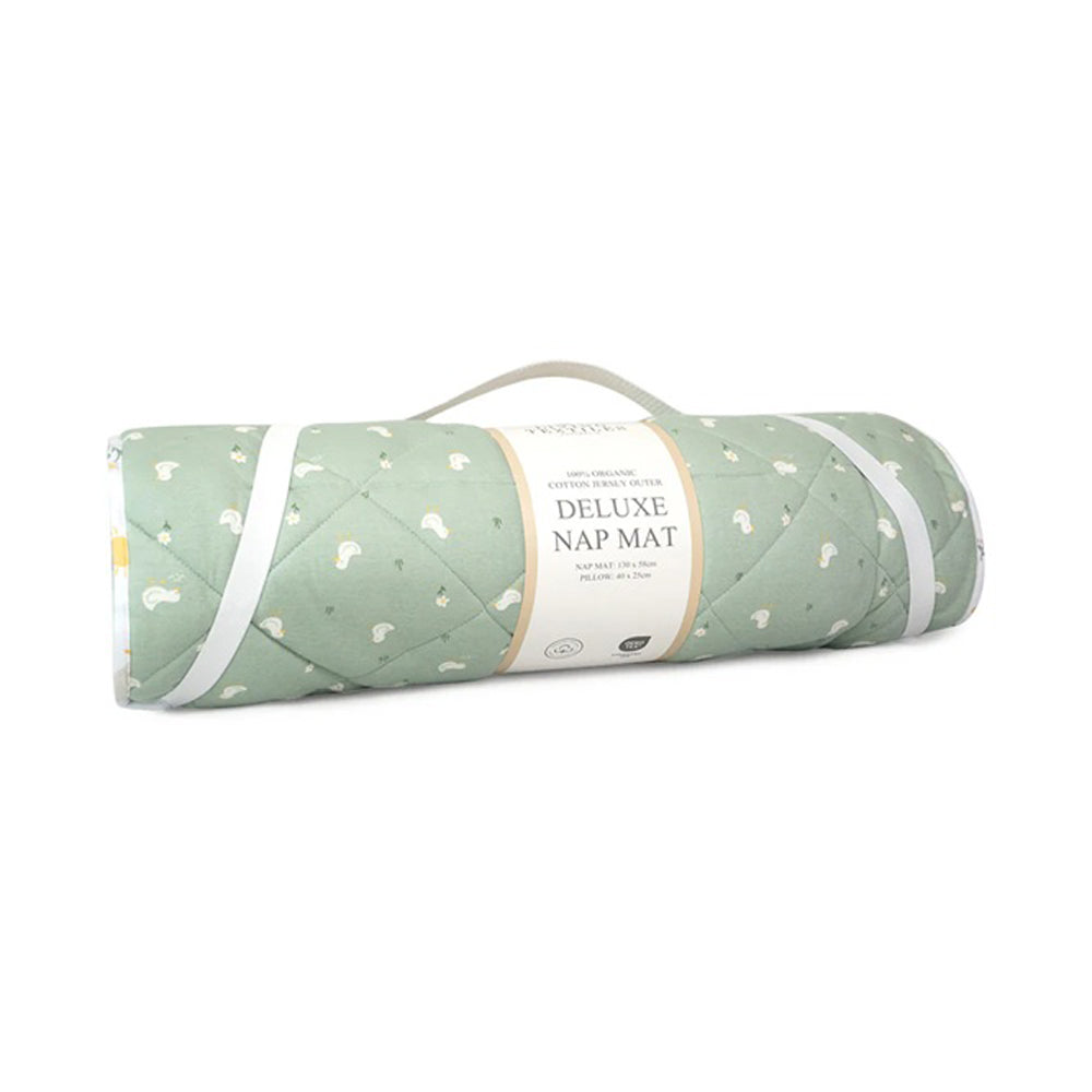 Ensure your little one enjoys peaceful sleep wherever they go with the Deluxe Nap Mat. Made from 100% Organic Cotton Jersey outer shell, it features a built-in blanket and pillow, perfect for kindy, childcare, travel, or cosy movie nights at home.