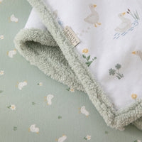 The Living Textiles Sherpa Pram Blanket Goosey Goosey is crafted from 100% Organic Cotton Interlock Jersey and backed with plush sherpa, this pram blanket is perfect for keeping baby warm on the go.
