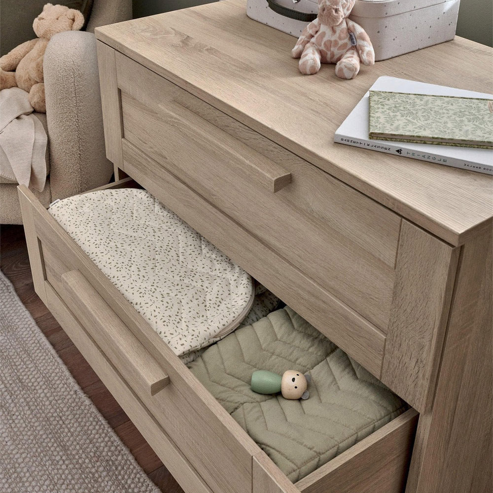 The Atlas Dresser-Changer offers plenty of storage space to organise your baby’s things, with 3 deep drawers for all your baby’s essentials, sleepsuits and clothes.