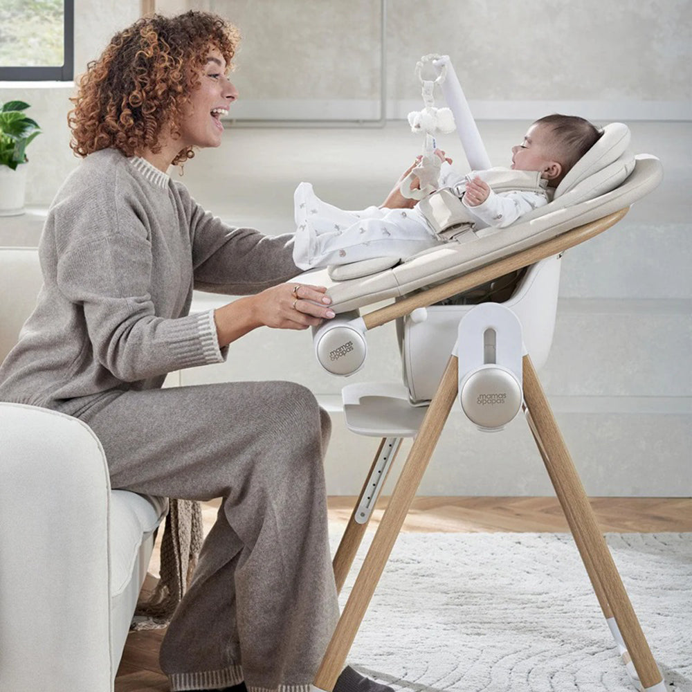 The Bouncer can be used in floor-mode for soothing and comforting or docked onto the Eno highchair for elevated accommodation and integration into family life*. And because its sleek and minimalist aesthetic matches that of our Eno highchair, you can stylishly co-ordinate your family space. Suitable from birth to around 6 months.