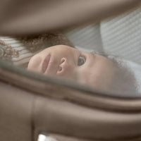 The cushioned, lie-flat mattress supports a natural sleeping position for newborns, perfect for daytime napping and safe overnight rest, whether on the chassis or portable stand.