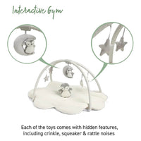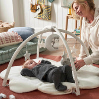 The Wish Upon a Cloud Playmat and Gym has a luxuriously soft faux-fur base, with gym arches and 4 hanging toys to stimulate and engage babies, encouraging them to reach out and grab.